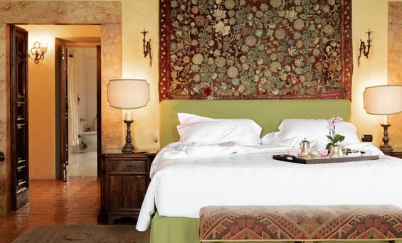 Una grande suite nell'ala dove un tempo risiedevano Getty e la sua amante, la Medici Suite bilancia storia, arte e modernità. Oggetti d'antiquariato e opere d'arte originali della collezione del magnate americano sono abbinati a dettagli di design moderno, conferendo alla camera uno stile autentico. Due scale in marmo incorniciano lo splendido bagno, dove una stravagante vasca da bagno rosa intenso si riflette attraverso la stanza in uno specchio decorato.